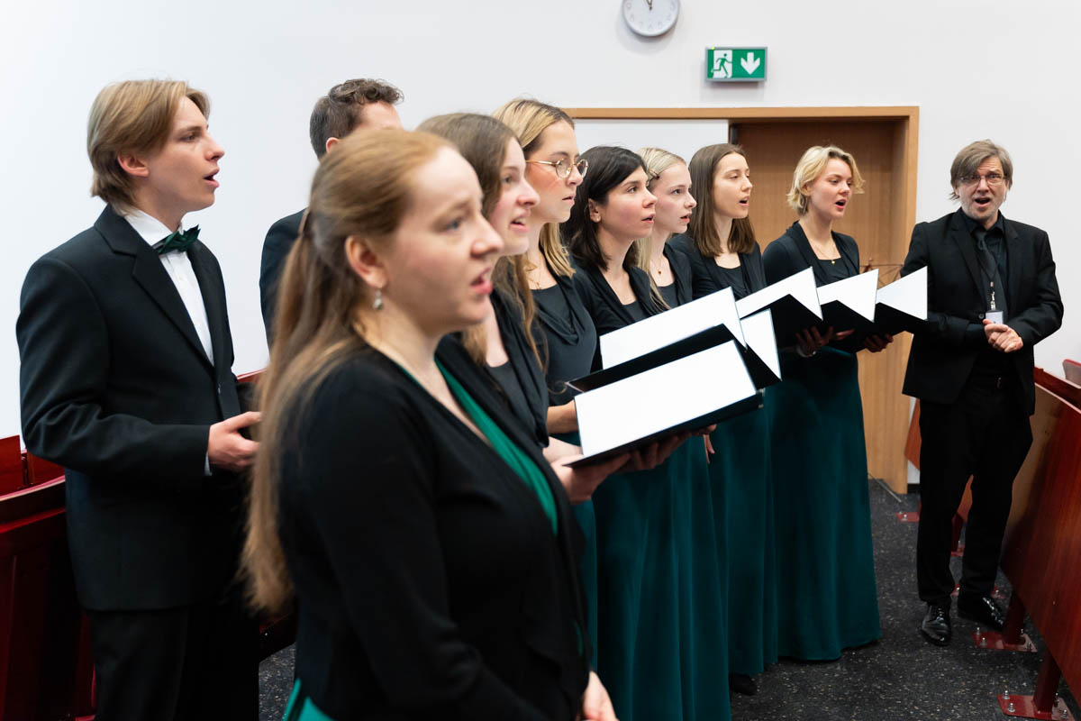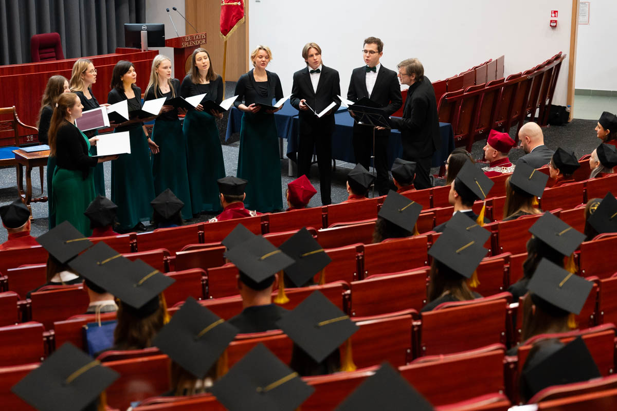 Uroczystość zwieńczył występ w wykonaniu Chóru WUM oraz rzucanie biretów i pamiątkowe wspólne zdjęcie.