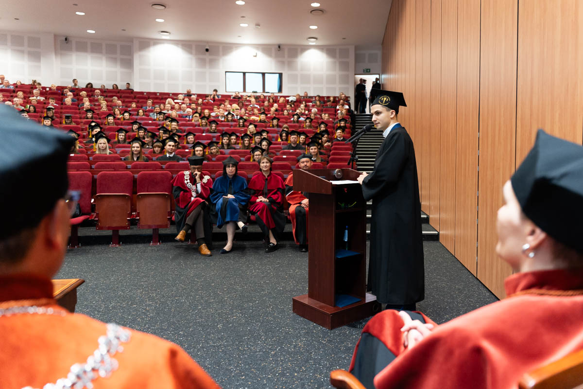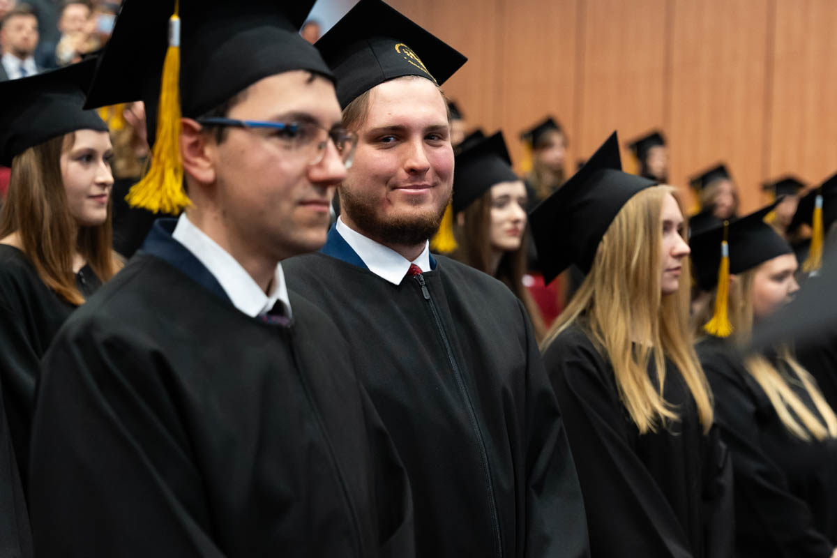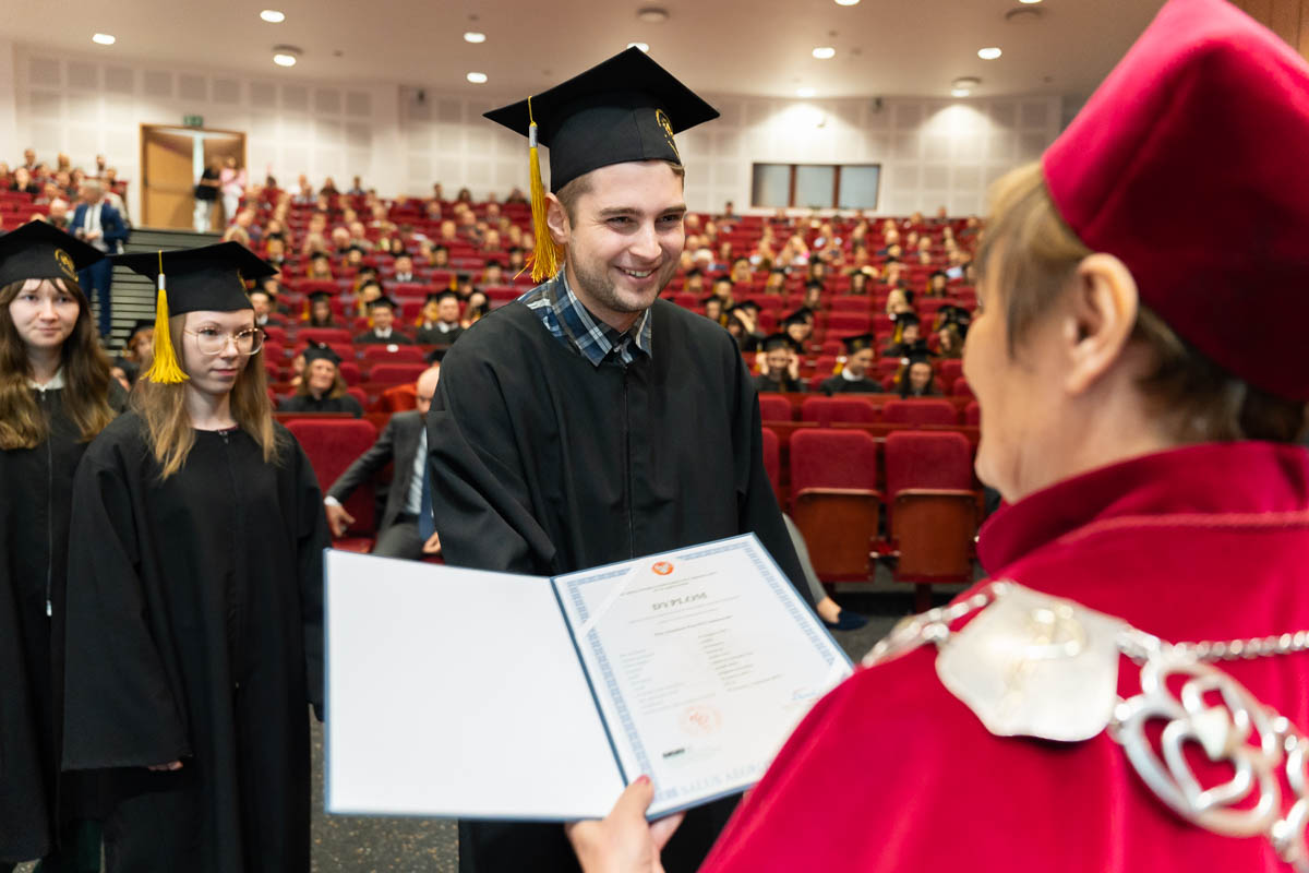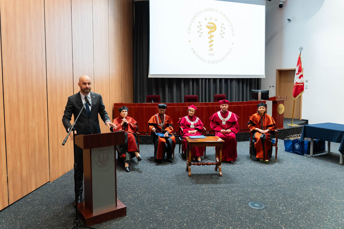 - Myślę, że dla wielu z nas studia to była wyprawa życia. Daleko od domu, nowe miasto, nowi ludzie…trochę, jakby zaczynać wszystko od nowa – powiedział Mateusz Więckiewicz, który zabrał głos w imieniu absolwentów. - Było dużo wspaniałych momentów: miłość życia, najlepsi przyjaciele czy wymarzona kariera. Nie brakowało także nieprzespanych nocy przed kolokwium, całodobowych laboratoriów, a wszystko po to, aby zostać farmaceutą, łącznikiem między nauką a zdrowiem, między chemią a człowiekiem.