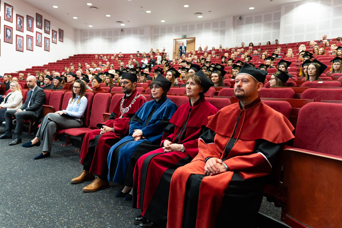 - To jest państwa wielki dzień. To wielki sukces w państwa życiu – mówił do bohaterów wydarzenia dr hab. Piotr Luliński - Już niebawem rozpoczniecie pracę zawodową, pracę w obszarze szeroko rozumianej służby zdrowia, w której większość z państwa będzie służyć drugiemu człowiekowi, pacjentowi – dodał dziekan. Wyraził przy tym przekonanie, że zdobyte na WUM wykształcenie umożliwi absolwentom rzetelne wykonywanie powierzonych obowiązków, zgodnie z najwyższymi standardami.