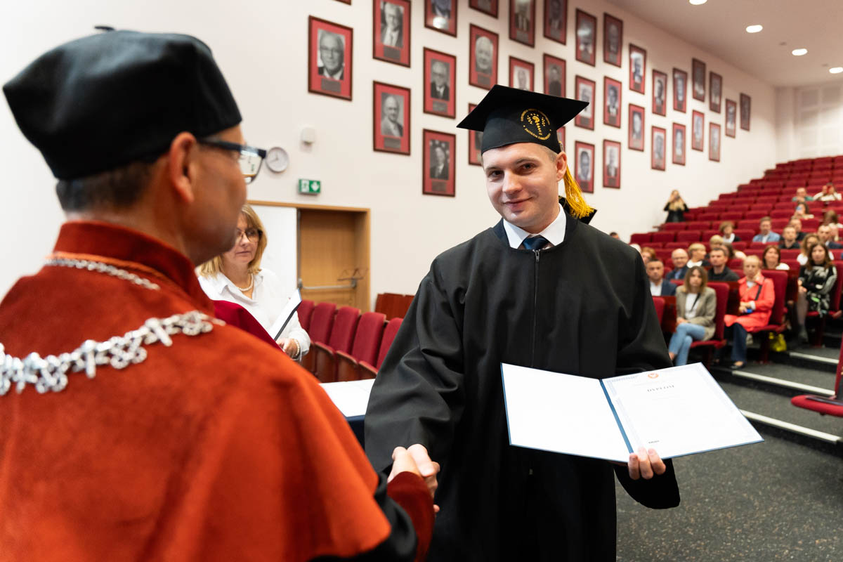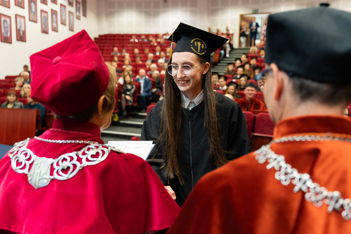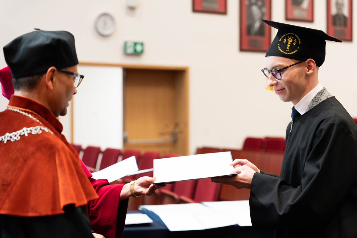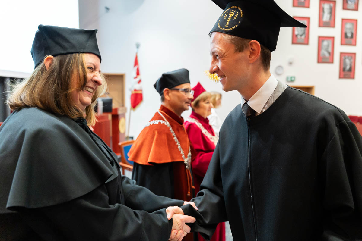 Każde dyplomatorium to ważne wydarzenie w życiu uczelni. 24 maja razem z absolwentami kierunku farmacja świętowali przedstawiciele władz rektorskich, władz wydziałowych oraz nauczycieli akademickich, w uroczystości uczestniczyli także najbliżsi absolwentów. Gospodarzem wydarzenia był dr hab. Piotr Luliński, dziekan Wydziału Farmaceutycznego.