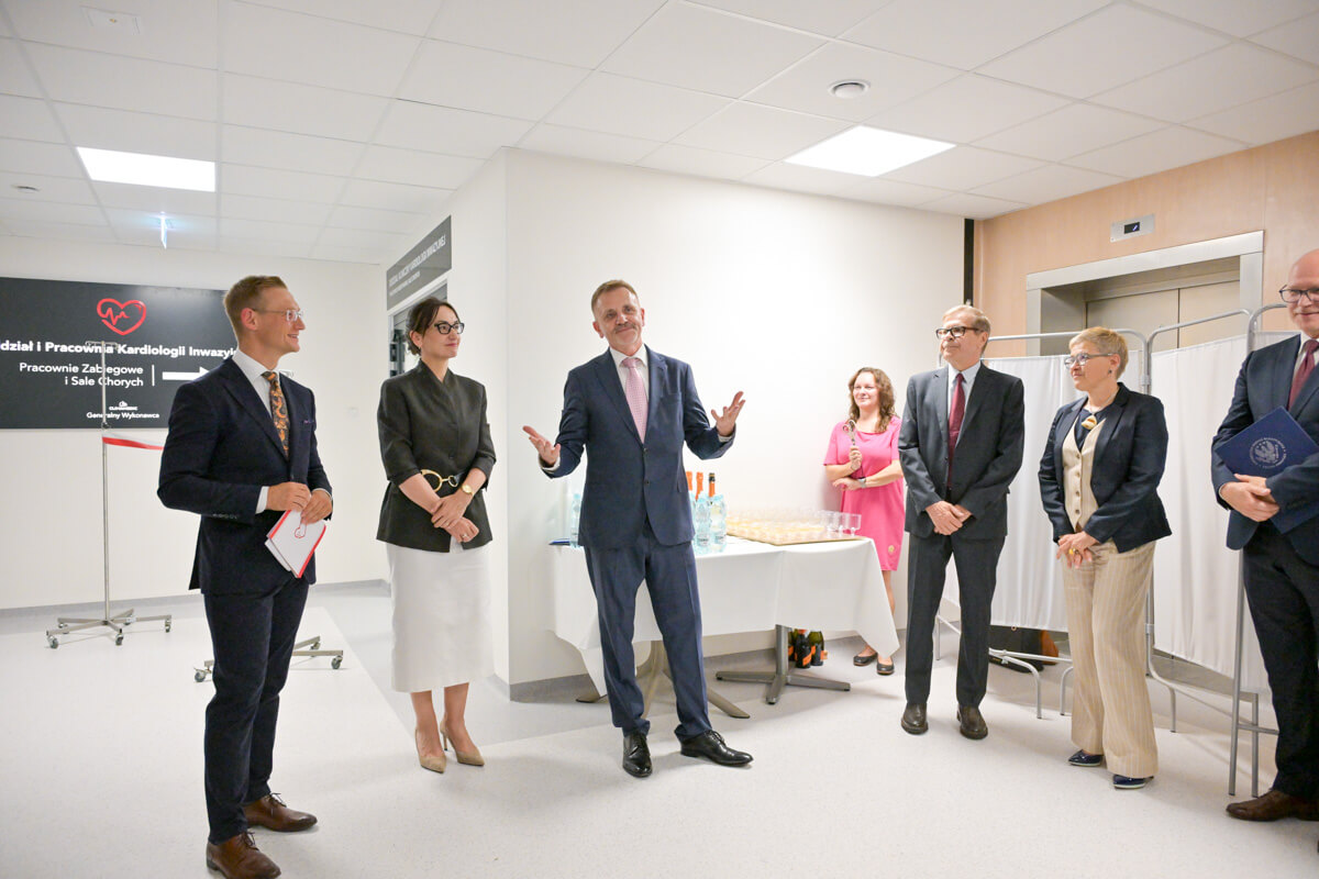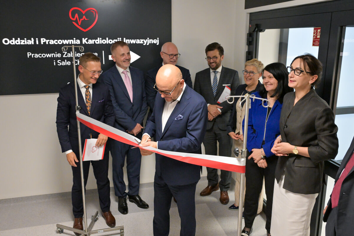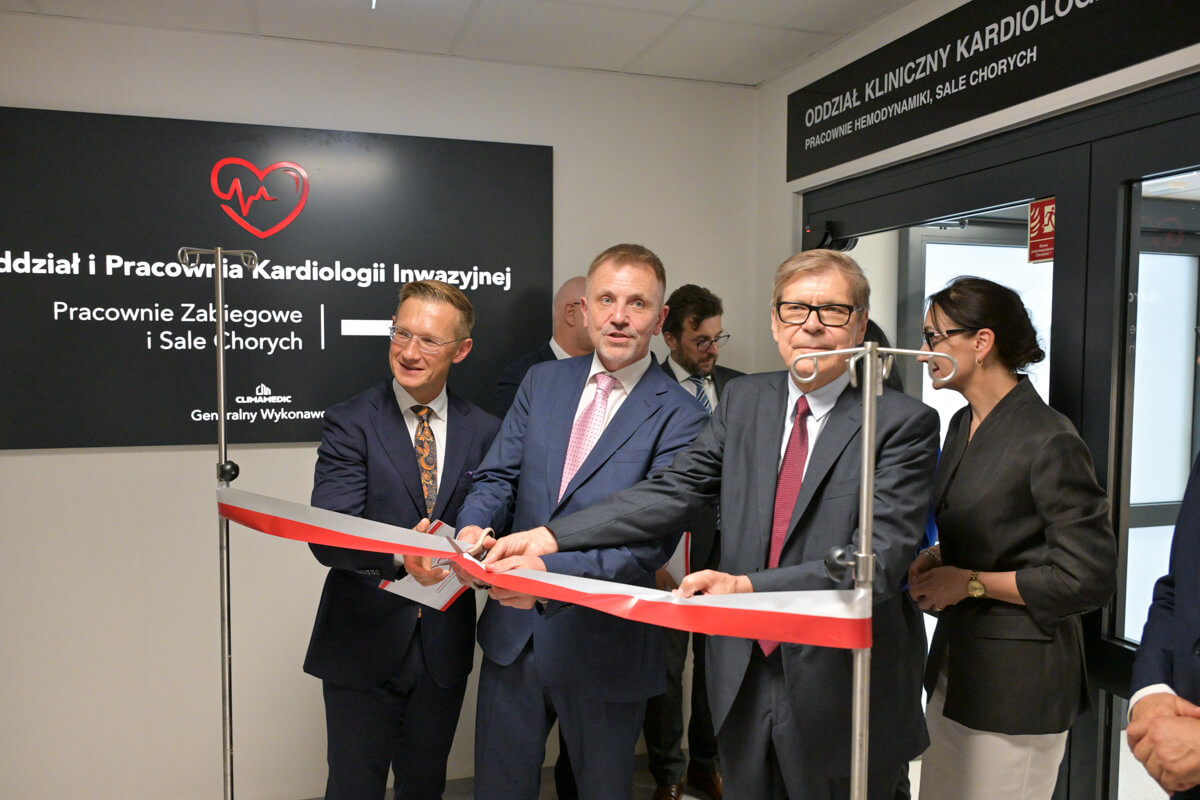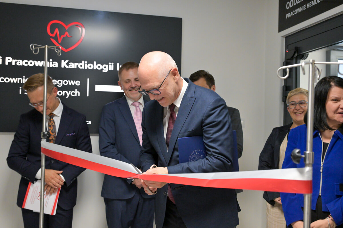Otwarcie zmodernizowanego Oddziału Kardiologii Inwazyjnej odbyło się 27 czerwca br. Uroczystego przecięcia wstęgi dokonali: prof. Maria Mrówczyńska, podsekretarz stanu w Ministerstwie Nauki i Szkolnictwa Wyższego, Katarzyna Kacperczyk, podsekretarz stanu w Ministerstwie Zdrowia, prof. Rafał Krenke, rektor WUM, Marzena Kowalczyk, dyrektor UCK WUM, Filip Nowak prezes Narodowego Funduszu Zdrowia, prof. Marcin Grabowski, kierownik I Katedry i Kliniki Kardiologii UCK WUM i prof. Janusz Kochman, kierownik Oddziału i Pracowni Hemodynamicznej, prof. Grzegorz Opolski.