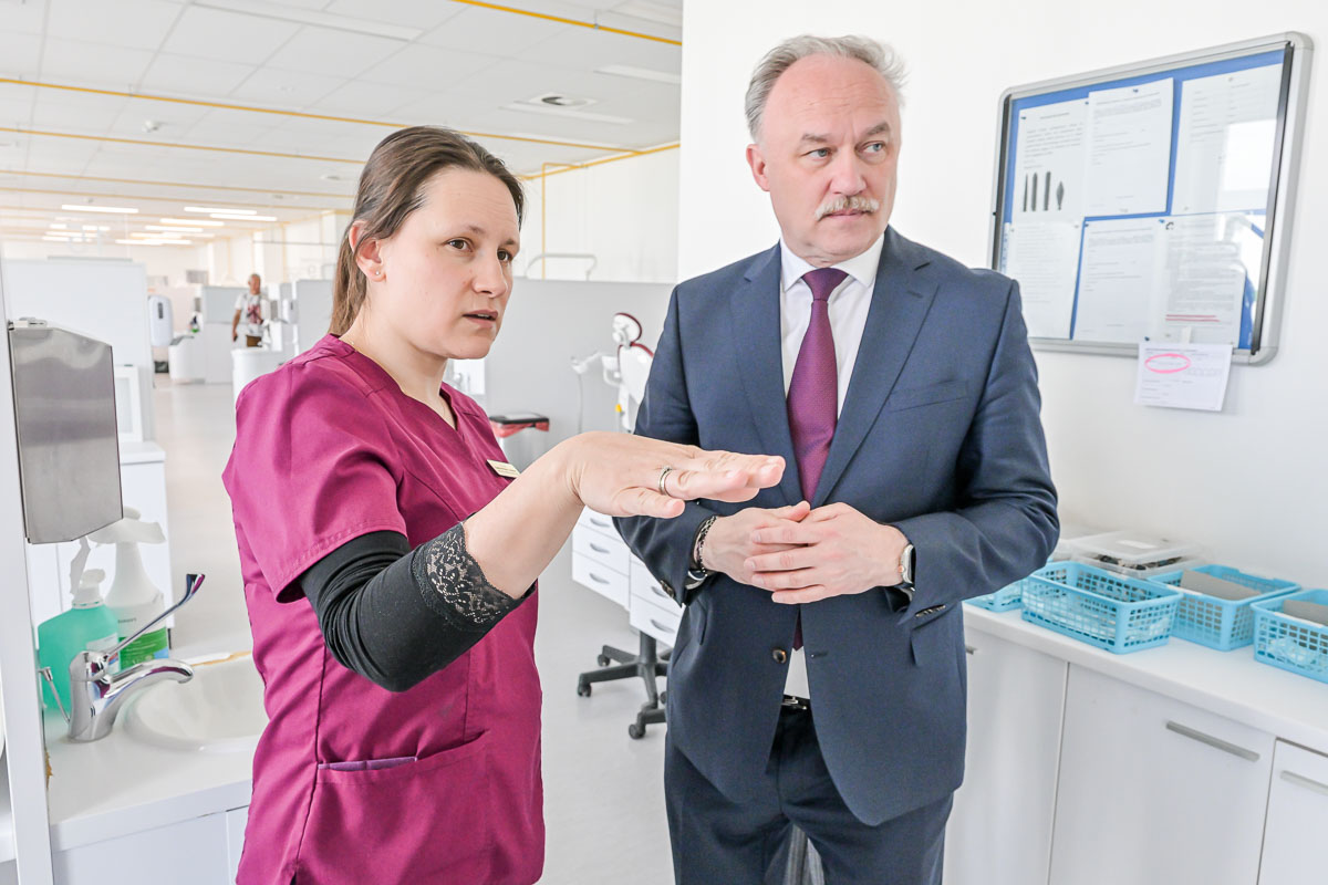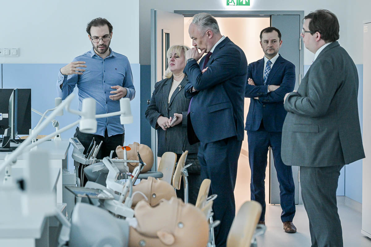 Delegacja z Ukrainy zwiedziła Uniwersyteckie Centrum Stomatologii, po którym oprowadzały prof. Agnieszka Mielczarek, dziekan WLS oraz dr hab. Piotr Regulski, prodziekan WLS ds. współpracy z zagranicą i kierunków: lekarsko-dentystycznego w języku angielskim i elektroradiologia. Delegacja była także w Centrum Symulacji Medycznych, o którego działaniu opowiadał jego kierownik dr Marcin Kaczor.