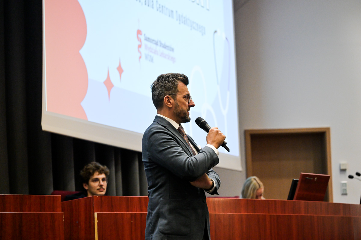 - Jeśli chodzi o filozofię kształcenia dokonujecie właśnie wielkiego skoku. To jest szkolnictwo wyższe, które definiuje się przez słowo studiowanie, a studiowanie jest czymś innym niż uczenie się, niż nauka do klasówki – podkreślał prof. Mariusz Gujski, dziekan Wydziału Nauk o Zdrowiu. – Szczególnie na początku studiów wielu osobom będzie trudno dopasować się do tego wymagającego procesu. Jeśli zatem nie rozumiecie czegoś, o czym mówił wykładowca, skontaktujcie się z nim po zajęciach, powiedzcie, że macie braki. Taką postawą niczego nie tracicie, a tylko zyskujecie szacunek i tylko wtedy możemy wam pomóc.