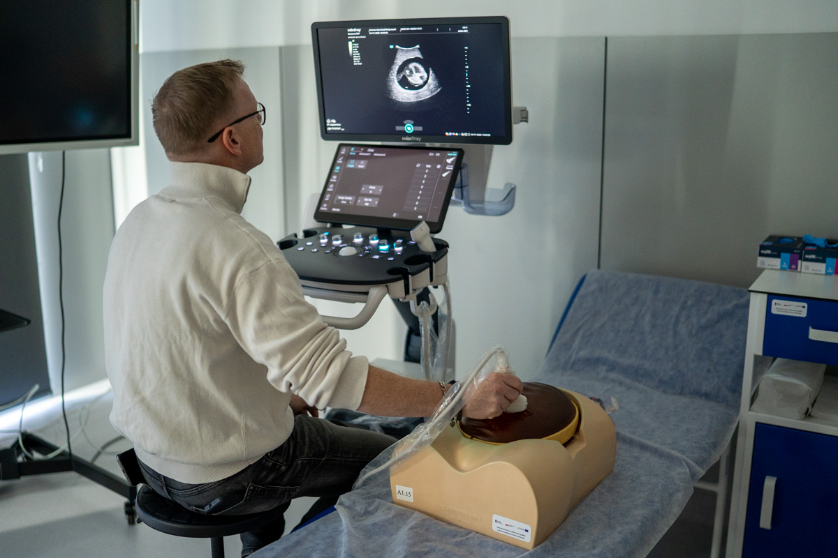 This is an advanced series of medical simulators that revolutionize the learning and improvement of ultrasound techniques. At CSM, we already have one adult US Mentor model, which can be used to learn many procedures and examinations. Its specialized version is the newly purchased ultrasound equipment for pregnant women. This device simulates likely scenarios related to the examination of pregnant women. Thanks to this, both students and doctors can improve their skills in interpreting ultrasound images and recognizing various conditions and pathologies during pregnancy. They can safely practice and develop their clinical skills, which ultimately translates into higher quality care for patients.