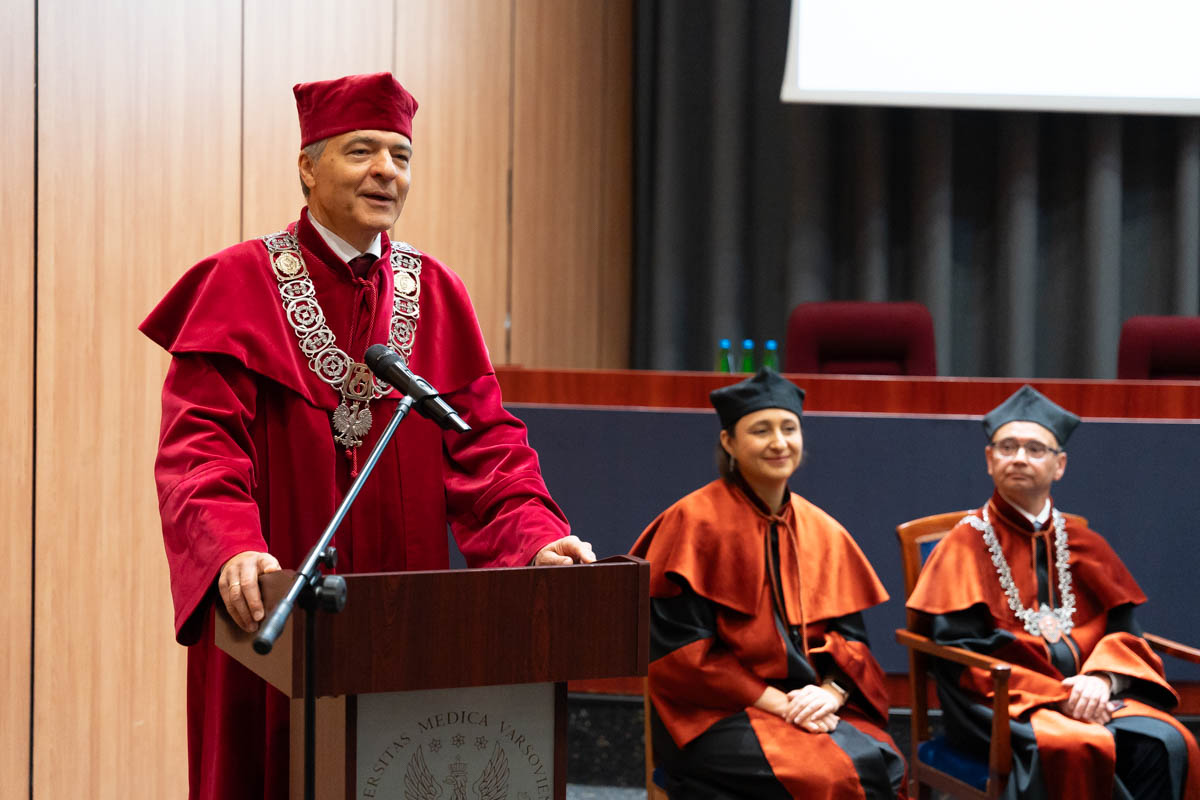 Gratulując absolwentom dr hab. Piotr Luliński, dziekan Wydziału Farmaceutycznego i gospodarz uroczystości, stwierdził z całą stanowczością, że są oni bardzo dobrze przygotowani, aby odpowiedzialnie wypełniać zawodowe obowiązki. To szczególnie ważne, bo diagnosta laboratoryjny to zawód zaufania publicznego, jego praca służy pacjentowi, a więc jego reprezentanci zawsze powinni działać rzetelnie i zgodnie z najlepszą praktyką.