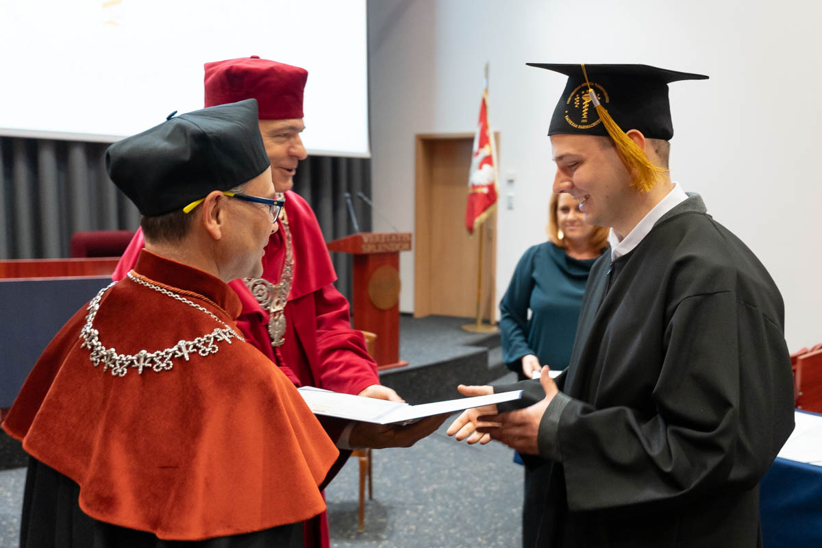 Prorektor ds. studenckich i kształcenia prof. Marek Kuch również dołączył się do życzeń. Zapewnił, że otrzymanie dyplomu to powód do ogromnej dumy dla wszystkich, a także gwarancja wiedzy na najwyższym poziomie.