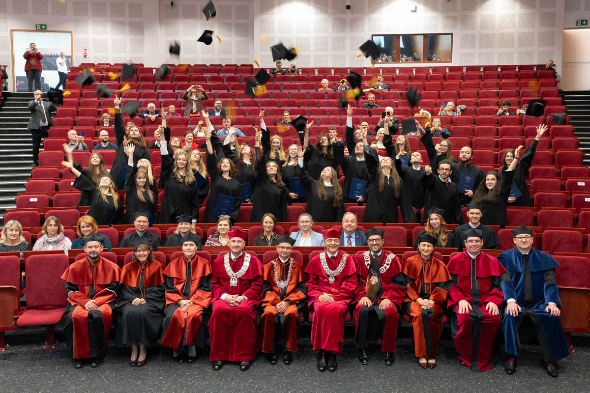 Zwieńczeniem dyplomatorium był minikoncert w wykonaniu Chóru WUM, rzucanie biretów oraz pamiątkowe zdjęcie.