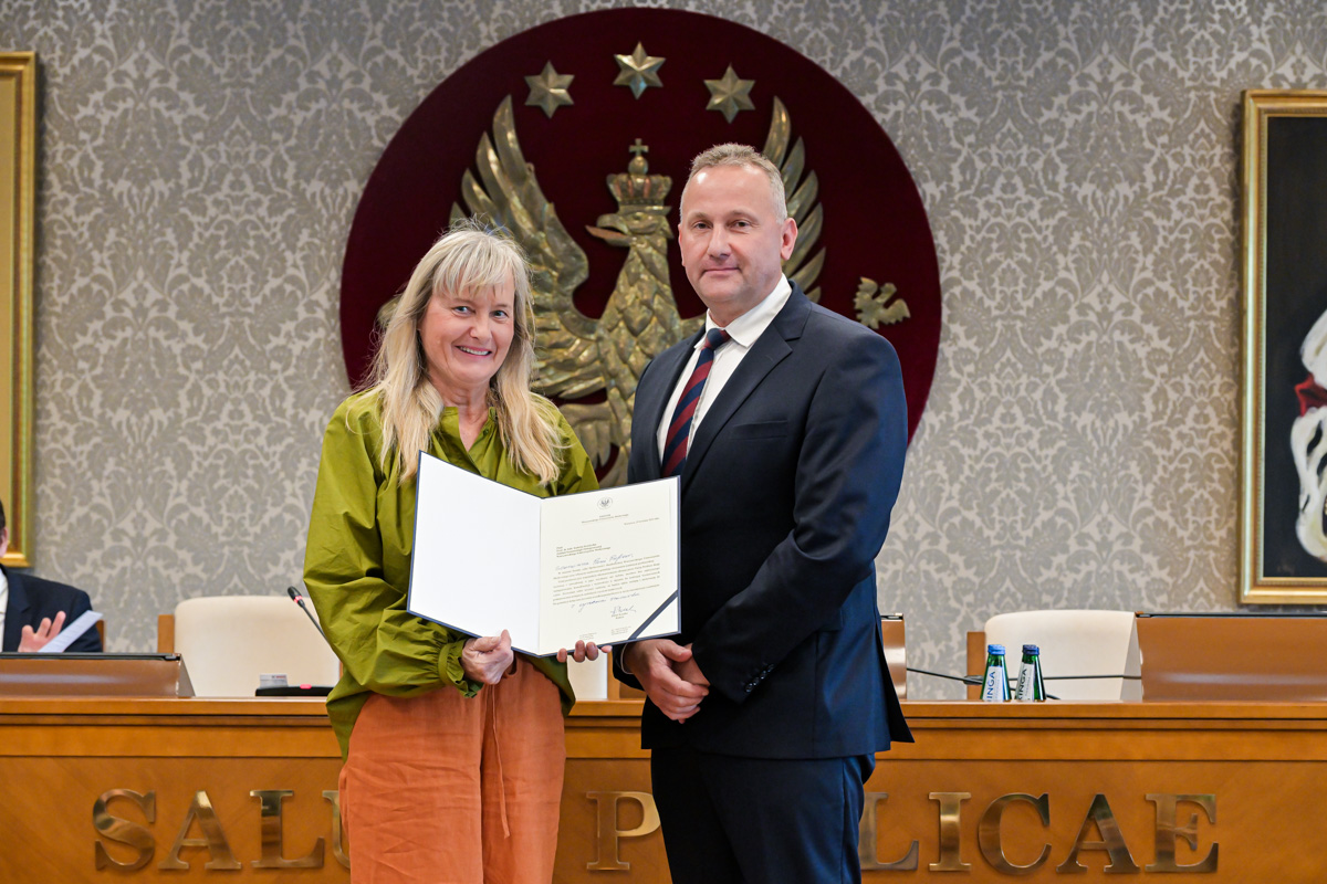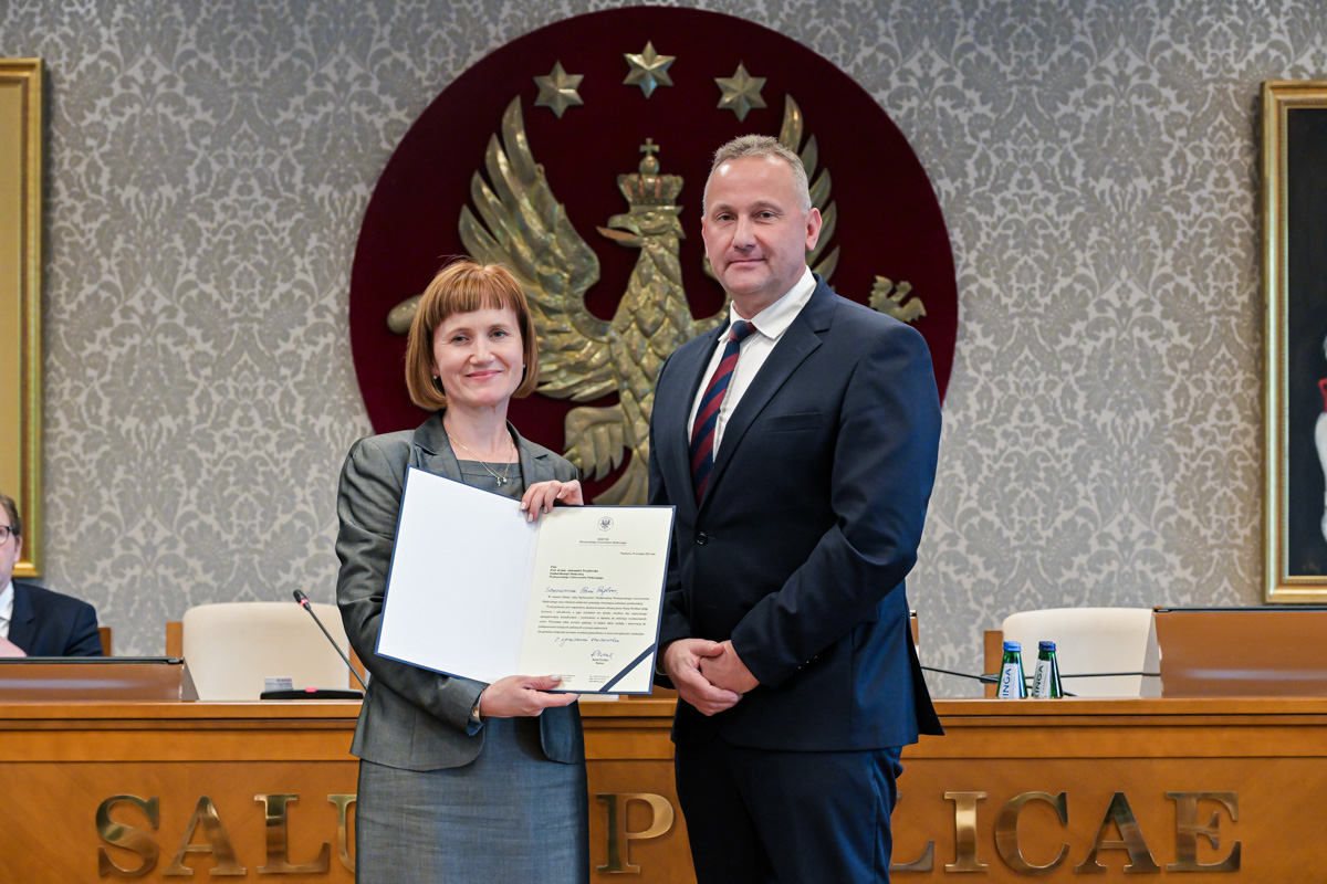 Podczas obrad Senatu (29 września br.) prof. Marcin Sobczak, prorektor ds. nauki i transferu technologii wręczał nowym profesorom listy gratulacyjne.