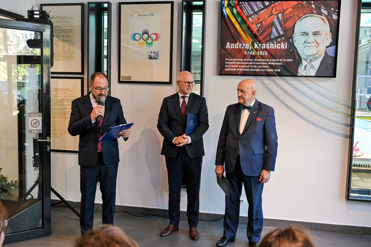 Wydarzenie odbyło się 24 września i zgromadziło obecne i byłe władze uczelni, sportowców i działaczy sportowych oraz rodzinę Andrzeja Kraśnickiego. Inicjatorem upamiętnienia prezesa PKOl był prof. Marek Krawczyk, rektor naszej uczelni w latach 2008-2016, a także pomysłodawca budowy nowoczesnego obiektu sportowego w ramach uniwersyteckiej infrastruktury.