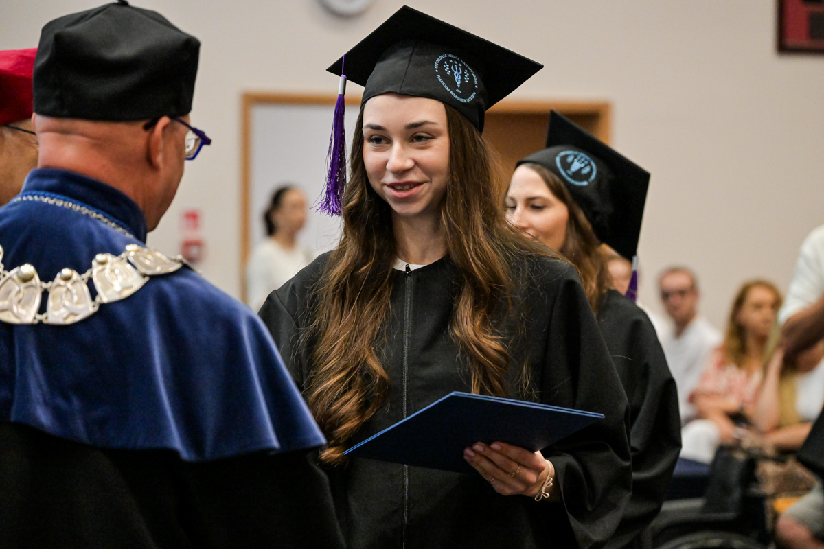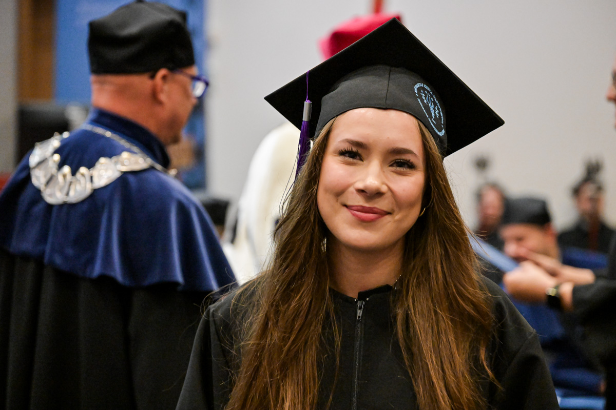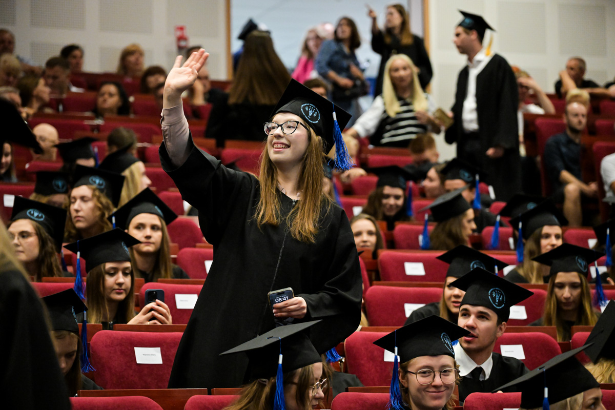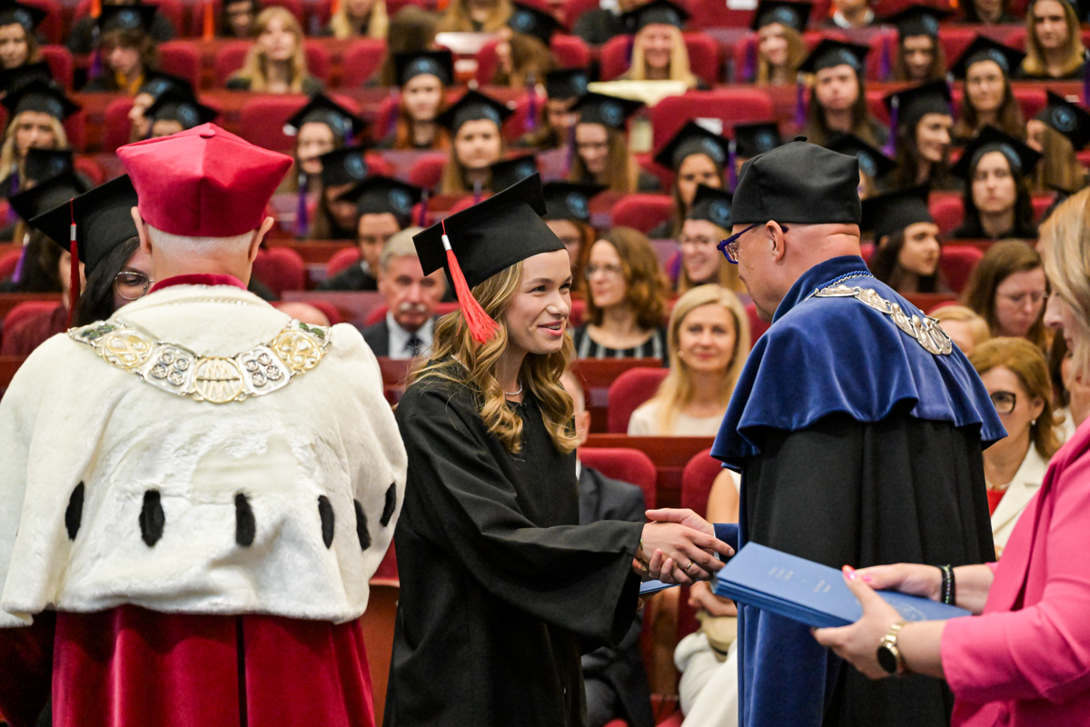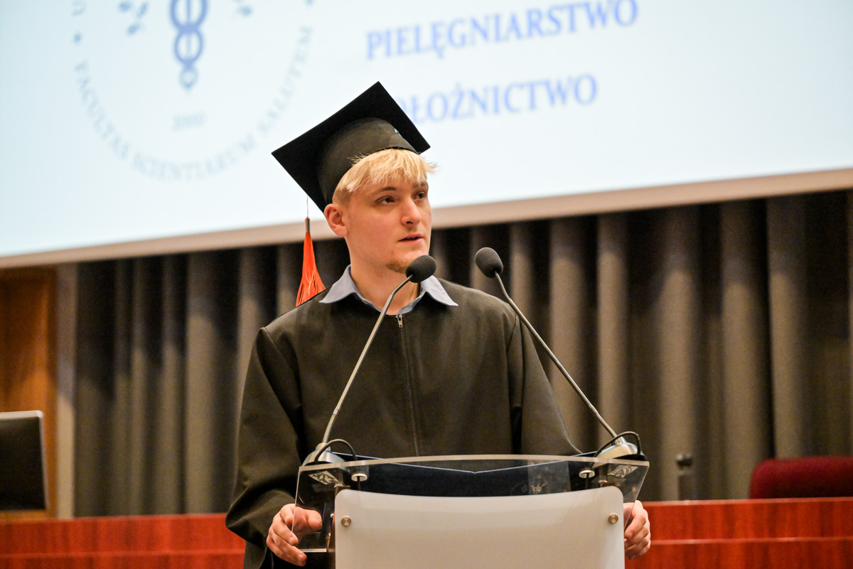 Na koniec uroczystości głos zabrali przedstawiciele absolwentów. Ich wystąpienia zawsze są pełne wdzięczności dla uczelni, nauczycieli akademickich i rodzin, a także przekonania, że z dyplomami są w stanie zrobić wiele dobrego. Bo, jak mówiła absolwentka zdrowia publicznego Maria Jędrzejczyk, która pełniła funkcję przewodniczącej Samorządu Studentów WNoZ, choć absolwenci mają różne historie i ukończyli różne kierunki, to wszystkich łączy ta sama misja: być tam, gdzie drugi człowiek najbardziej ich potrzebuje.