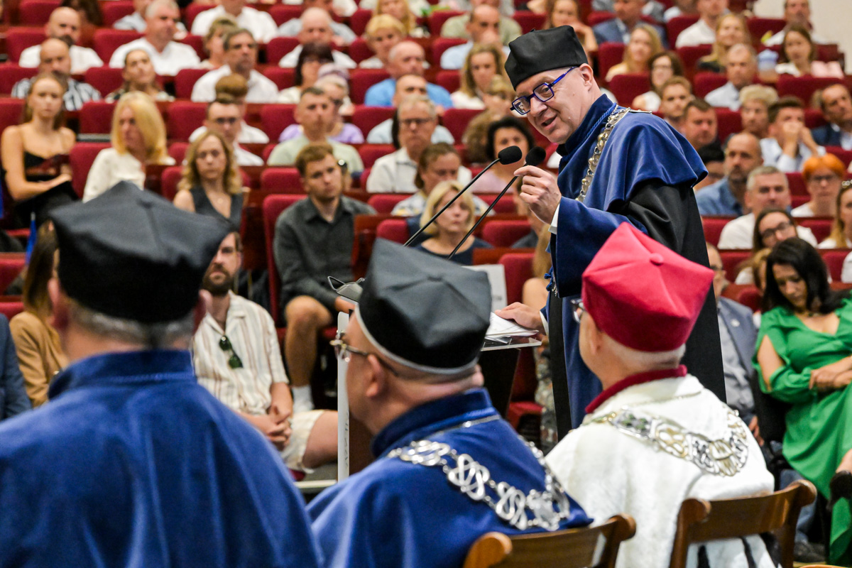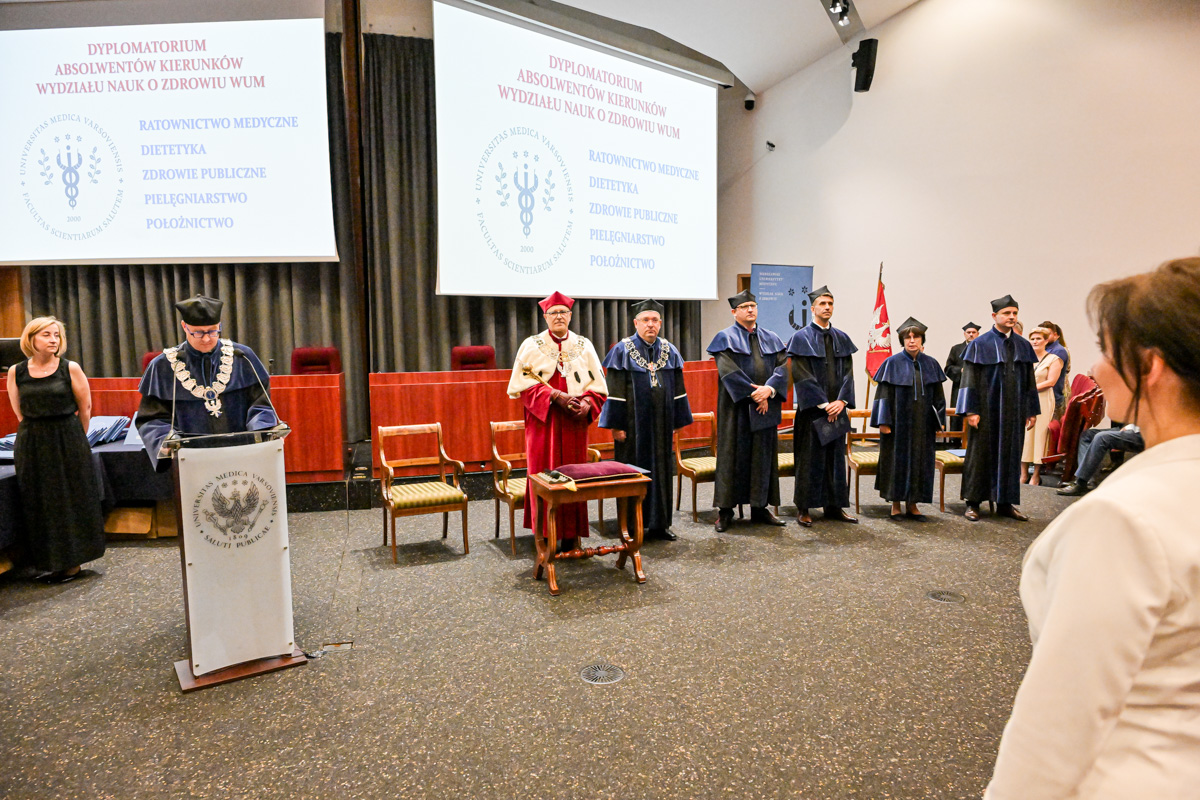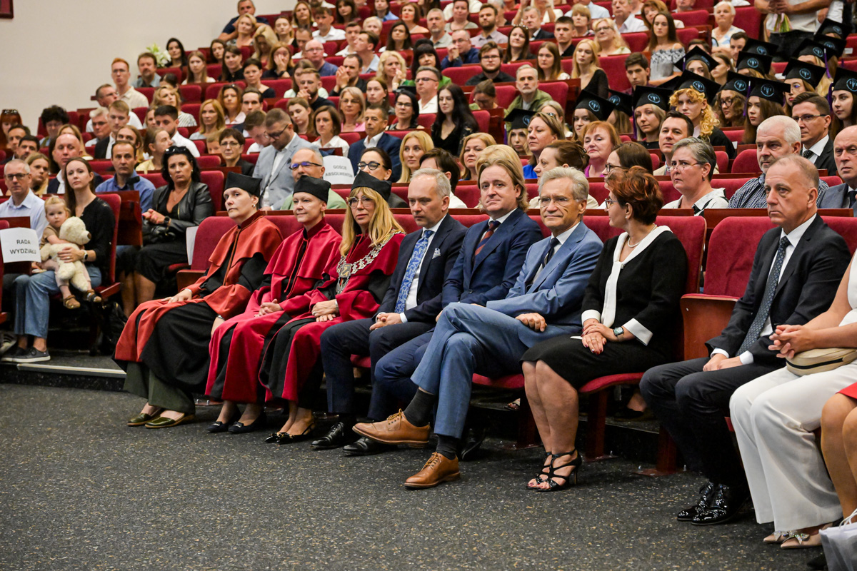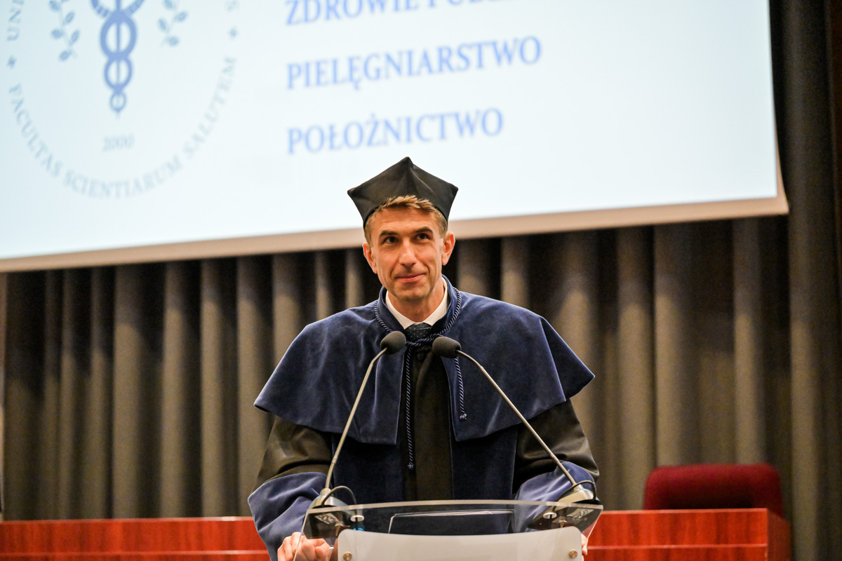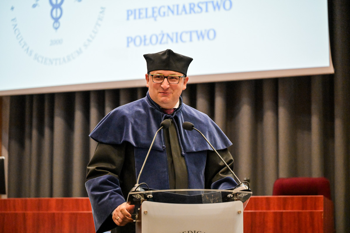 – Finis coronat opus, koniec wieńczy dzieło. Wspaniale, że jest to dobry koniec dla siedzących tu dziś, w biretach i togach, naszych absolwentów – podkreślił dziekan Wydziału Nauk o Zdrowiu prof. Mariusz Gujski – Jest to koniec owocny, osiągnięty ciężką pracą.