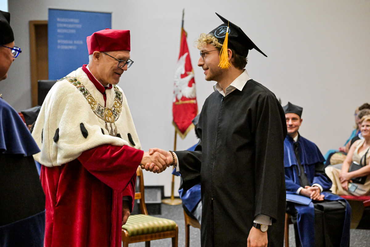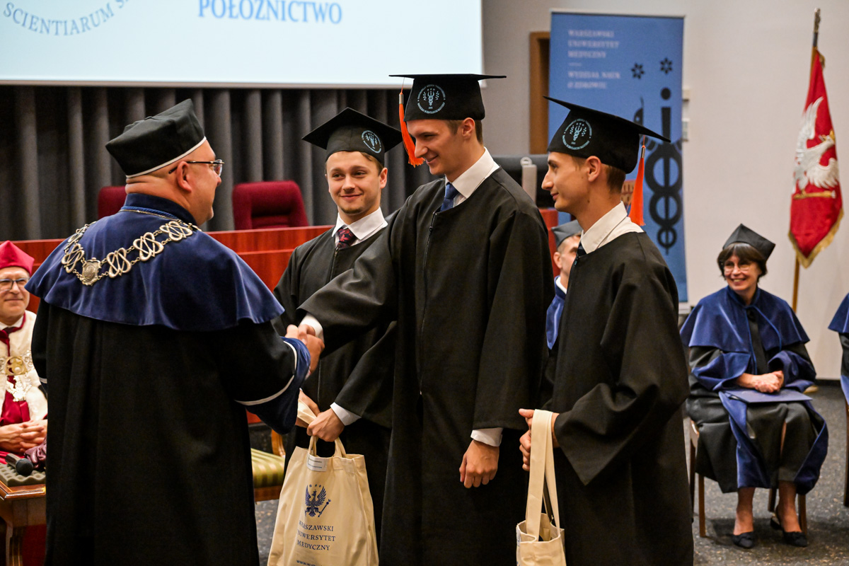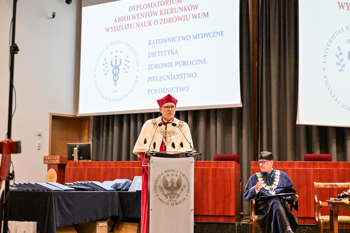 Ciepłe słowa pod adresem dyplomowanych padły również ze strony dr. hab. Patryka Rzońcy, prodziekana WNoZ ds. dietetyki i ratownictwa medycznego, który podziękował dyplomowanym za to, że tworzyli część akademickiej wspólnoty. Z kolei dr hab. Filip Raciborski, prodziekan WNoZ ds. zdrowia publicznego podziękował za wkład, jaki absolwenci zdrowia publicznego wnieśli w rozwój tego kierunku. Dyplomowani mogli też wysłuchać życzeń i gratulacji od prof. Roberta Gałązkowskiego, przewodniczącego Rady Dyscypliny Nauk o Zdrowiu, kierownika Zakładu Ratownictwa Medycznego WUM.