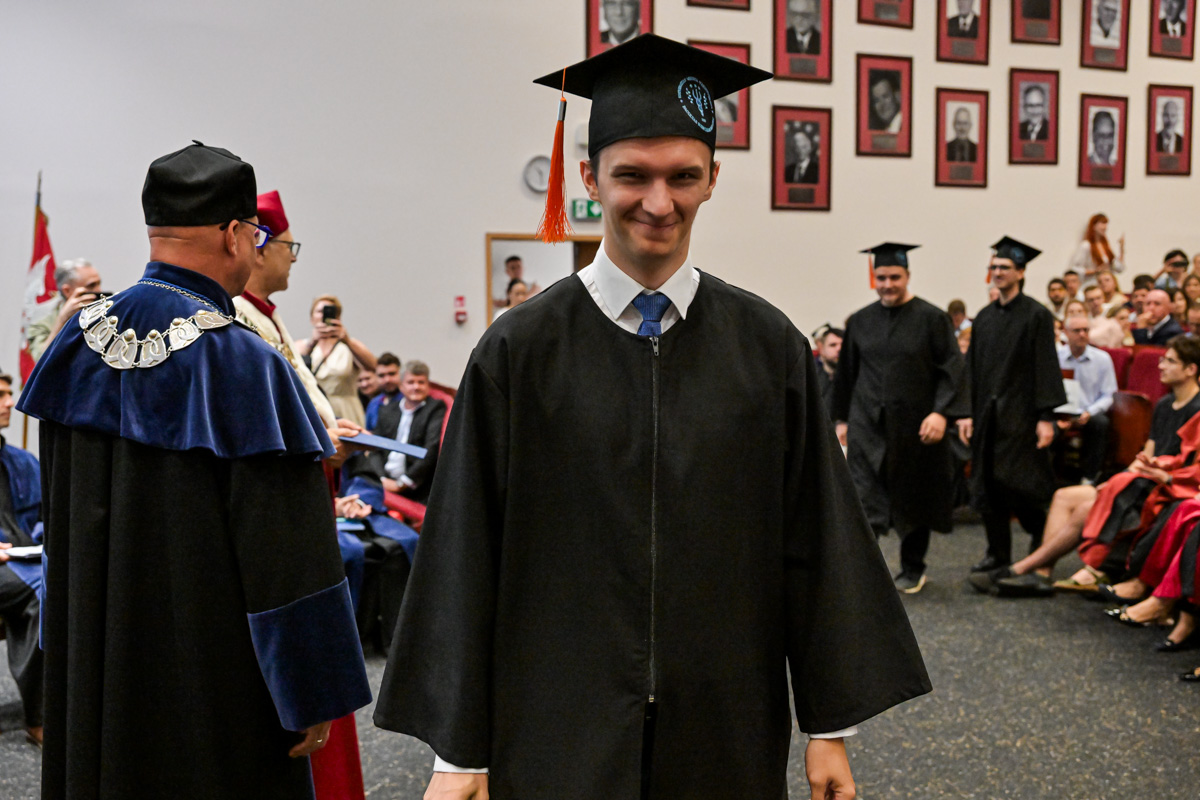 Z kolei Maciej Ciastoń, pełniący do niedawna funkcję starosty III roku studiów I stopnia na kierunku ratownictwo medyczne, zwrócił uwagę, że otrzymanie dyplomów to początek prawdziwej odpowiedzialności, a także początek…nauki.
