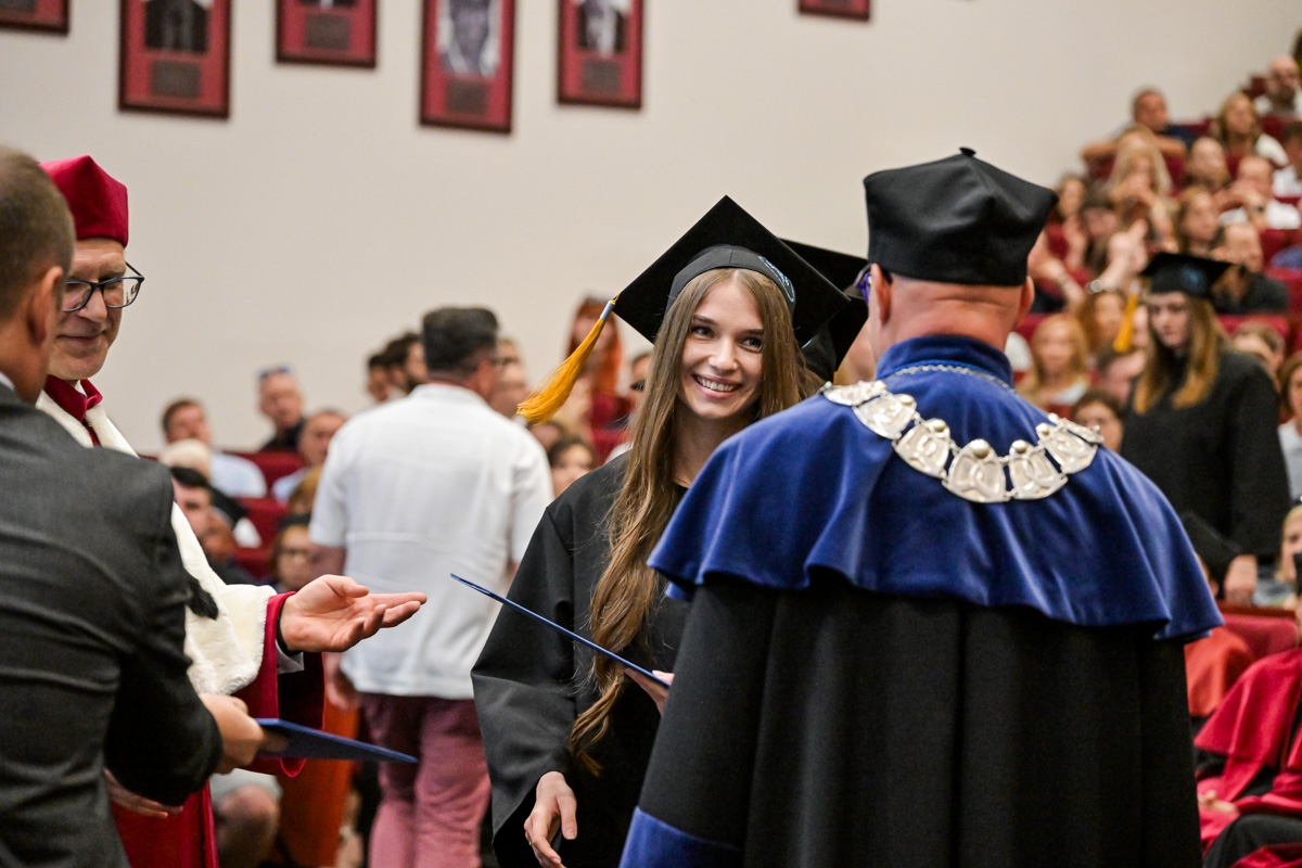 – Bardzo ważna jest też wrażliwość na potrzeby innych, cierpliwość dla bólu i cierpienia, szacunek dla ludzkich słabości, których na pewno doświadczycie. Te wartości będą czynić z Was nie tylko dobrych profesjonalistów, ale przede wszystkim dobrych ludzi – mówił rektor. I dodał: – Z całego serca życzę Wam, byście nigdy nie stracili pasji, z którą rozpoczynaliście drogę zawodowa, niech każdy dzień przynosi wam satysfakcję, przekonanie, że robicie coś naprawdę ważnego.