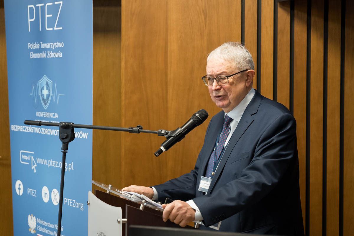 Prof. Tomasz Hermanowski, prezes zarządu Polskiego Towarzystwa Ekonomiki Zdrowia podziękował osobom, które wniosły największy wkład organizację konferencji. W tym gronie znalazł się rektor, którego patronat pomógł i w uzyskaniu dofinansowania na organizację i w zaproszeniu najlepszych prelegentów, a także Ministerstwo Zdrowia, które udzieliło dofinansowania. Następnie profesor opowiedział o najważniejszym celu przyświecającym organizacji wydarzenia.