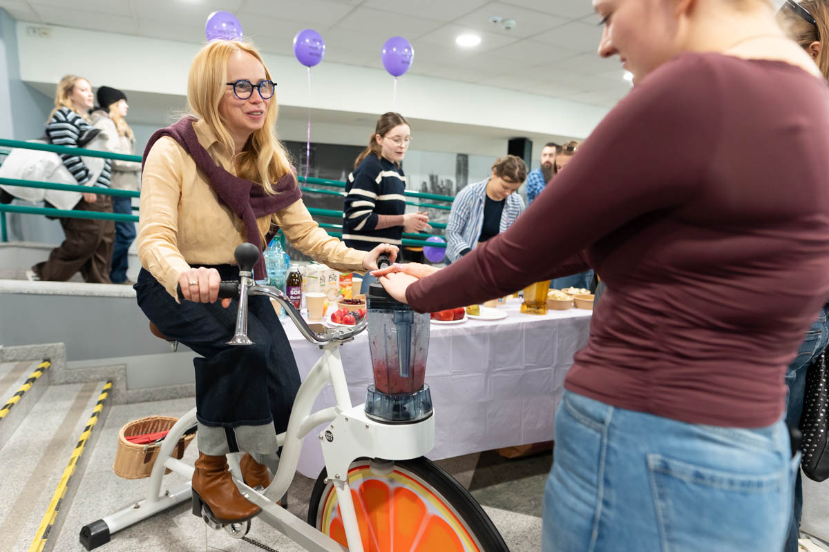 Gości wydarzenia przywitali prof. Rafał Krenke, rektor WUM, dr hab. Patryk Rzońca, prodziekan kierujący WNoZ oraz główne organizatorki dr hab. Beata Sińska, kierownik Zakładu Żywienia Człowieka WNoZ oraz dr hab. Grażyna Bączek, kierownik Zakładu Dydaktyki Ginekologiczno-Położniczej WNoZ. Rektor WUM wyraził nadzieję, że wydarzenie zyska charakter cykliczny i przerodzi się w projekt dla społeczności dzielnicy i miasta. Dr hab. Beata Sińska opowiedziała, co się będzie działo na stoiskach. Szczególnie zachęcała do skorzystania z blender bike, czyli połączenia roweru stacjonarnego i blendera, za pomocą którego można przygotować sobie smootie z ulubionych owoców.