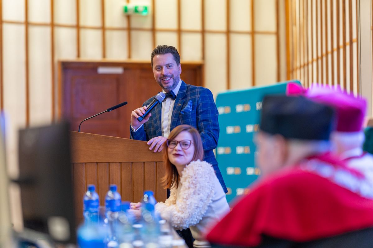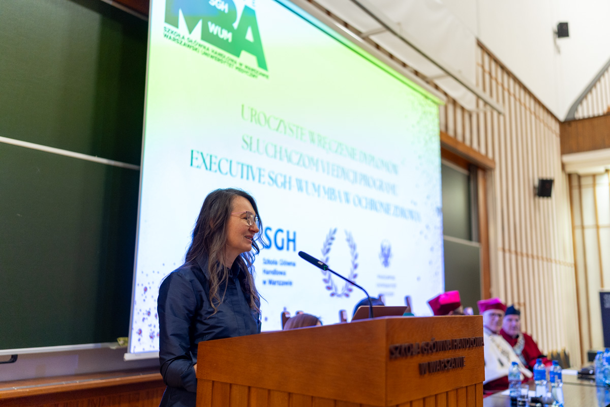 Rectors of both universities were present at the graduation ceremony: Professor Piotr Wachowiak for the SGH, and Professor Rafał Krenke for WUM. Also present were the representatives of the Partner Council: Professor Maciej Słodkowski, director of the Postgraduate Education Center; Professor Bolesław Samoliński; and Bartek Kwiatek, as well as the lecturers: Tomasz Maciejewski, PhD, Tomasz Rostkowski, PhD Hab.; Professor Piotr H. Skarżyński, Maciej Kuźma; Robert Mołdach, PhD; Michał Chrobot, PhD, Michał Jakubczyk, PhD Hab., Professor Paweł Skowronek, Mikołaj Pindelski, PhD Hab.