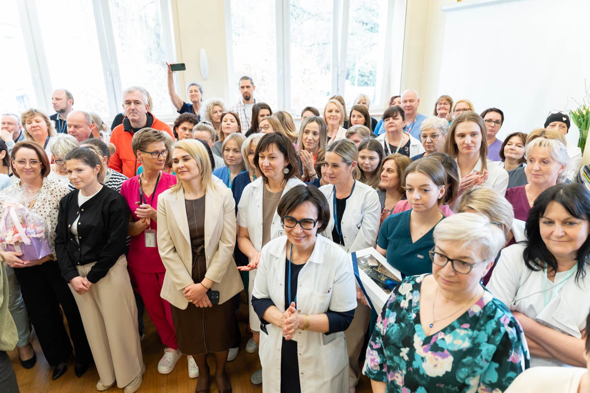 The Rector presented the letter in person during the farewell ceremony, which took place in the hospital’s conference room. The event was attended by members of the hospital’s management, heads of WUM clinical units operating on Karowa Street, almost all hospital staff, and numerous guests. Among them were Dr. Tomasz Maciejewski, Undersecretary of State at the Ministry of Health; Anna Dudzińska, Chair of the Regional Council of the Warsaw District Chamber of Nurses and Midwives; Barbara Mazurkiewicz, Vice Chair of the Regional Council of the Warsaw District Chamber of Nurses and Midwives; Prof. Marek Krawczyk, Rector of WUM from 2008 to 2016; and Prof. Paweł Włodarski, Dean of the Faculty of Medicine at WUM.