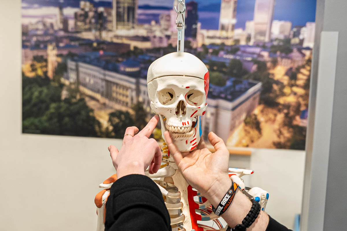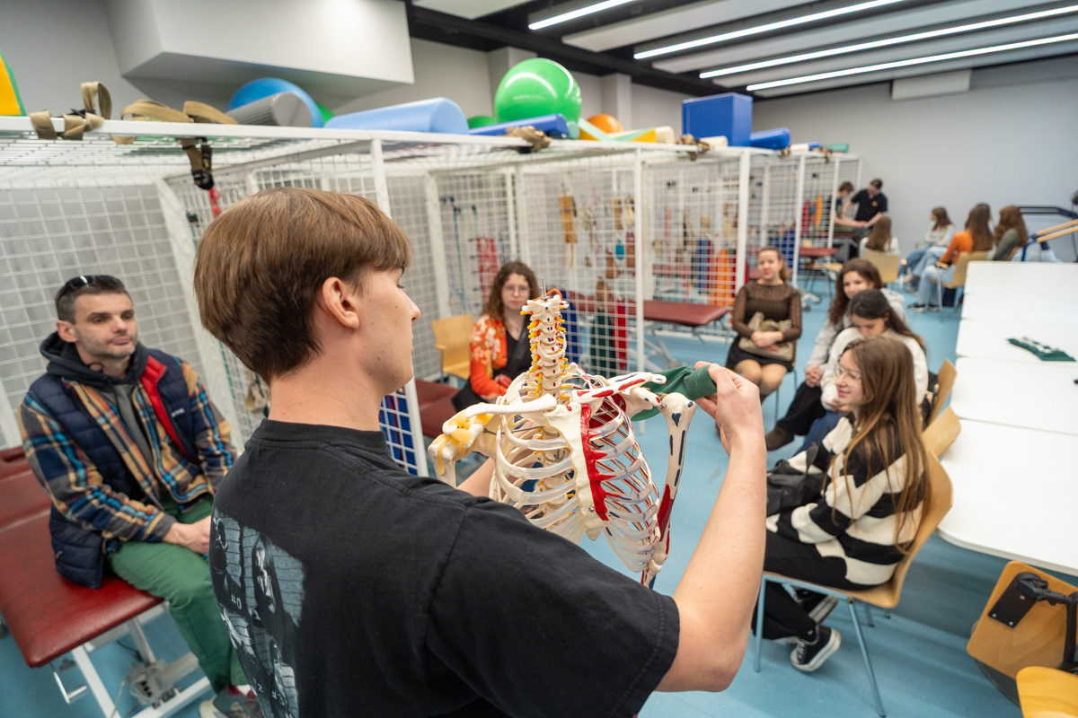 Most workshops were fully booked on the day registration opened. The topics were broad, so everyone could find something interesting. As in previous years, the surgical suturing workshops were particularly popular. Participants practiced single sutures on professional skin pads and learned about minimally invasive procedures. These workshops were hosted by students from the Scientific Club of Pediatric and Minimally Invasive Surgery. Medical analytics students led blood collection workshops, while Katarzyna Nowak from WUM’s Career Office conducted a workshop titled “How to choose studies that are really for me?” There were also kinesiotaping workshops combined with visits to physiotherapy labs. Students prepared a short anatomy lesson, a physiotherapy knowledge test, and a demonstration of biomechanical lab equipment for visitors.