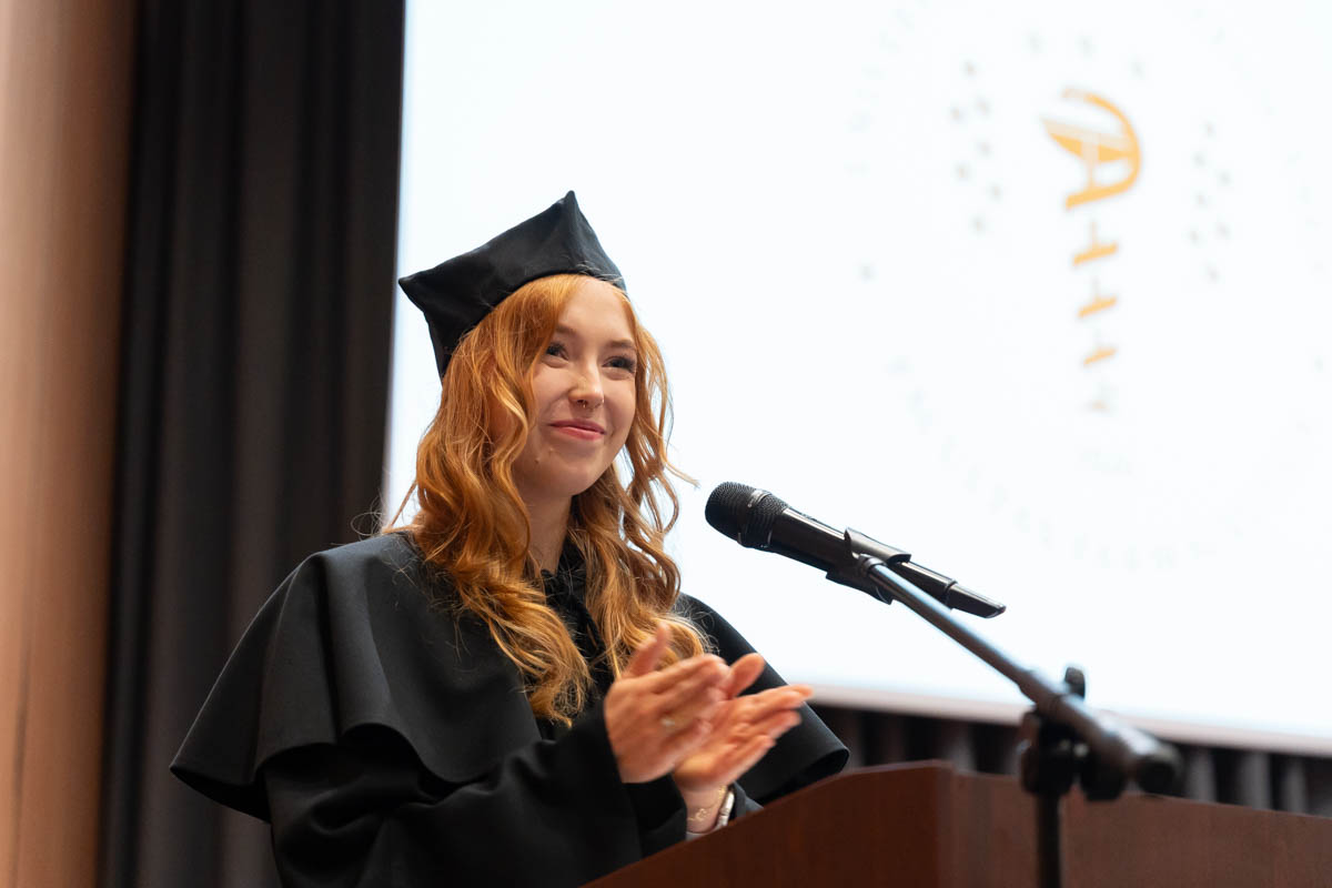 Izabela Pacek spoke on behalf of the graduates, thanking everyone involved in the teaching process and wishing her colleagues success on their new path.