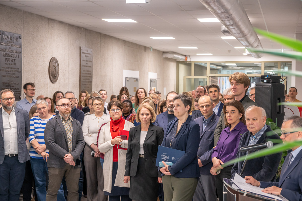 The symbolic unveiling was performed by Dean Prof. Piotr Luliński, Vice Rector Prof. Dorota Olczak-Kowalczyk and the granddaughter of Prof. Biniecki – Alina Picazio.