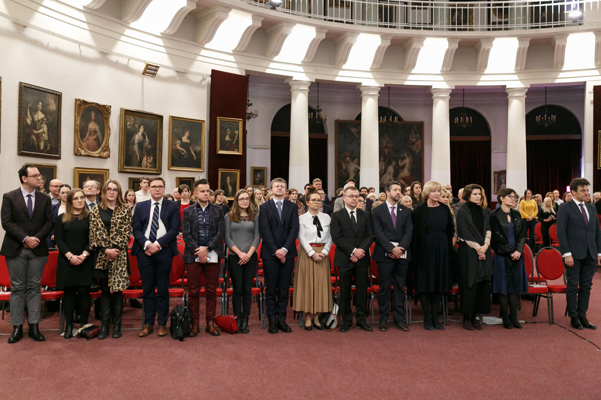 „Te grudniowe Spotkania, kiedy tu w Galerii Porczyńskich znakomici wykładowcy tłumaczą zgromadzonym istotę dokonań laureatów Nagrody Nobla z danego roku, są wielkim świętem nauki i jednym z tych wydarzeń Wydziału Lekarskiego, które stanowi o jego tożsamości. Dlatego też bardzo się cieszę, że mimo zmian organizacyjnych w naszej Uczelni, przygotowanie Sesji Noblowskich pozostało w gestii Wydziału Lekarskiego. Składanie hołdu nauce i dzielenie się wiedzą z innymi to idee, jakie towarzyszyły gospodarzom Sesji Noblowskich – moim znakomitym poprzednikom: prof. Andrzejowi Karwowskiemu – inicjatorowi i organizatorowi Sesji Noblowskich w latach 1991-95, prof. Wiesławowi Glińskiemu, gospodarzowi tych wyjątkowych wieczorów z lat 1996-2001, prof. Markowi Krawczykowi, który zapraszał nas w latach 2002-2007, Jego Magnificencji prof. Mirosławowi Wielgosiowi, który był organizatorem wspaniałych Sesji Noblowskich w latach 2008-2015 oraz prof. Pawłowi Włodarskiemu, gospodarzowi Sesji w latach 2016-2018. Bycie gospodarzem Sesji Noblowskich po tak znakomitych Postaciach to wielki honor, ale i zobowiązanie utrzymania wysokiego poziomu Wydarzenia” - mówił dziekan Wydziału Lekarskiego prof. Marcin Wojnar.