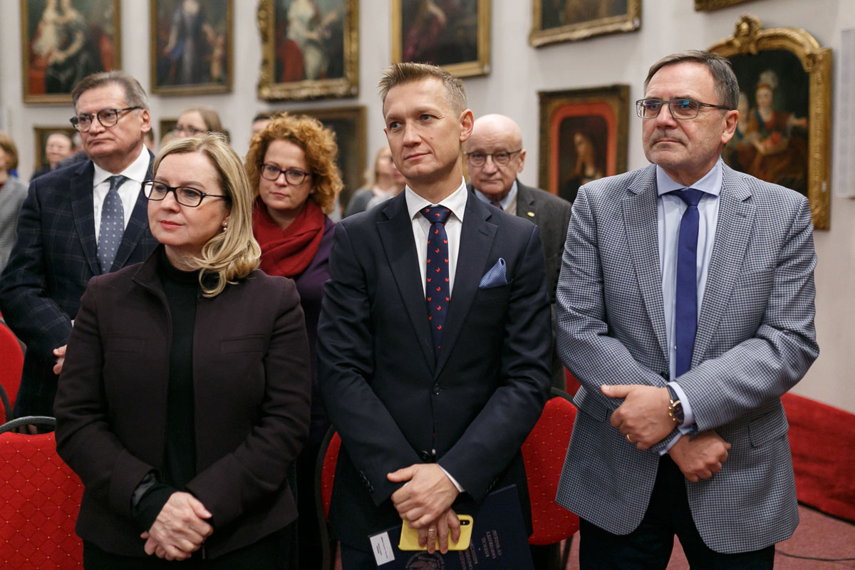 W wydarzeniu udział wzięły władze naszej Uczelni: prof. Mirosław Wielgoś, prof. Barbara Górnicka, prof. Jadwiga Turło, prof. Lidia Rudnicka, prof. Piotr Małkowski, prof. Elżbieta Mierzwińska-Nastalska, prof. Piotr Wroczyński, dr hab. Joanna Gotlib, prof. Małgorzata Olszewska, prof. Włodzimierz Sawicki, prof. Marcin Grabowski. Przybyli również: prof. Marek Krawczyk, prof. Witold Rużyłło, prof. Bolesław Samoliński, prof. Krzysztof. J. Filipiak, prof. Paweł Włodarski, prof. Bożena Kociszewska – Najman, reprezentanci towarzystw naukowych i organizacji zawodowych, kierownicy katedr, klinik i zakładów, doktoranci oraz pracownicy Uniwersytetu.