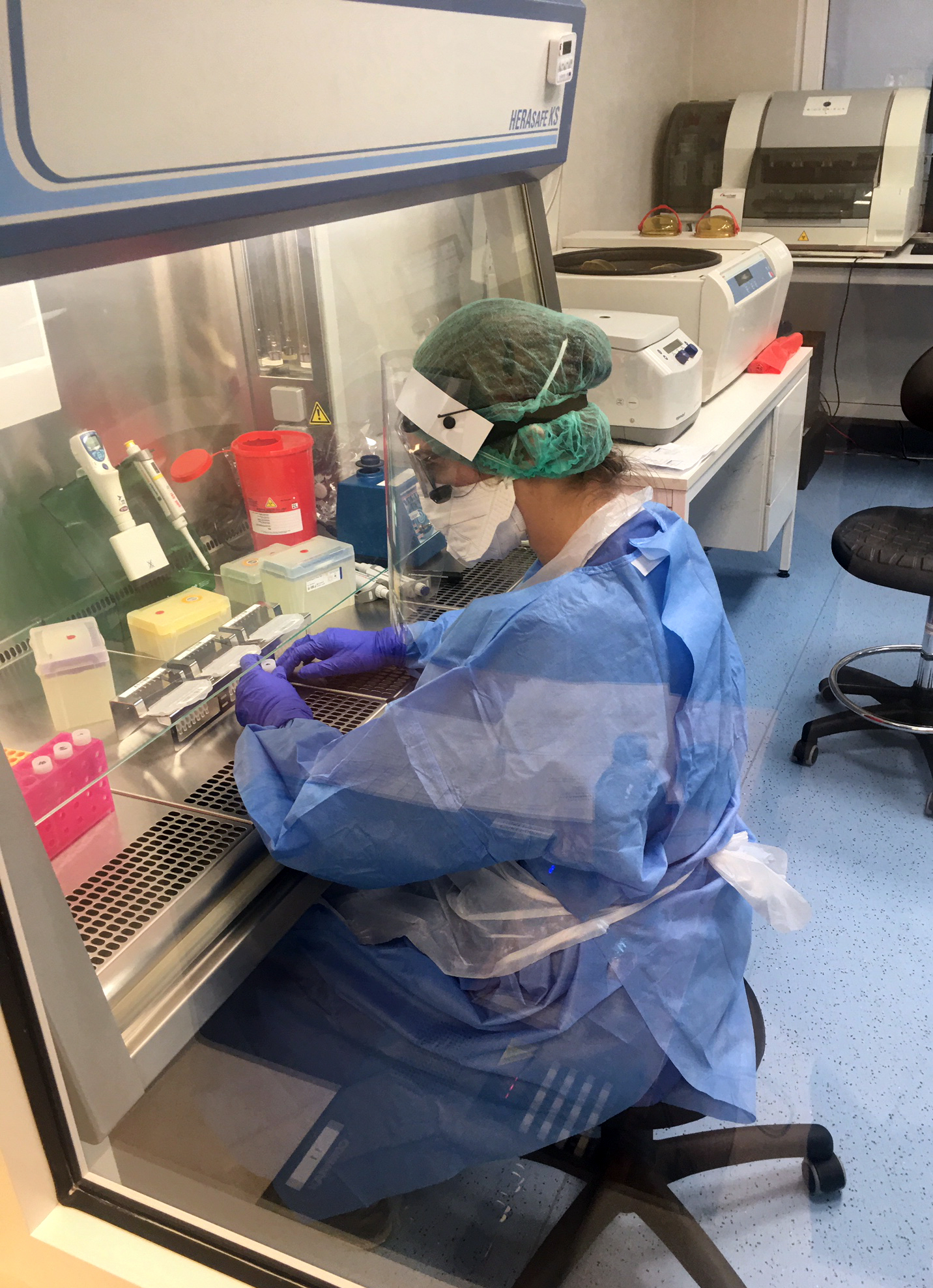Laboratorium o klasie bezpieczeństwa BSL 2 bada metodami molekularnymi próbki od pacjentów oraz personelu trzech szpitali Uniwersyteckiego Centrum Klinicznego, obsługuje również Zakład Medycyny Sądowej WUM oraz Szpital Dziecięcy w Dziekanowie Leśnym. Obecnie Laboratorium COVID pracuje w trybie całodobowym, badając od 100 do 150 próbek każdego dnia.