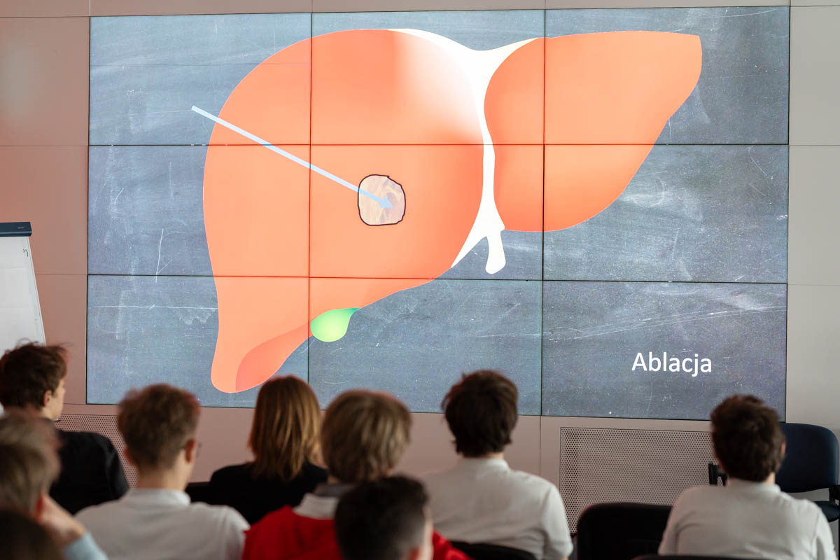 Wydarzenie zakończyła wyjątkowo długa i ciekawa sesja pytań i odpowiedzi. Licealiści byli bardzo zainteresowani metodami radiologii interwencyjnej. Dociekali, jaka jest skuteczność zabiegów, czy mogą wiązać się z jakimiś powikłaniami i w jakich konkretnie przypadkach można je stosować.