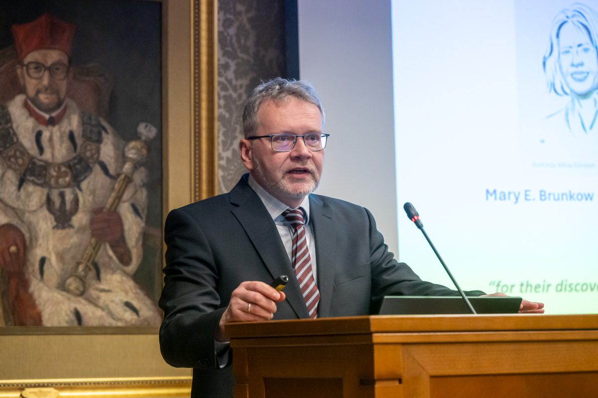 - W efekcie pracy tegorocznych laureatów Nagrody Nobla powstało nowe pole badań - obwodowa tolerancja immunologiczna - które otwiera drzwi do terapii chorób autoimmunologicznych, nowotworów i poprawy wyników przeszczepień. Osiągnięcia noblistów są wybitnie inspirujące. Uświadamiają, że nauki podstawowe mogą mieć bardzo szeroki praktyczny wpływ na rozwój medycyny. Chociaż często swój potencjał ujawniają dopiero po wielu latach – mówił rektor.